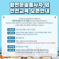 - 교육대상: 화주와 계약을 체결한 화물차주, 선사와 계약을 체결한 작업자, 항만출입 공무원 및 공공기관 직원 등